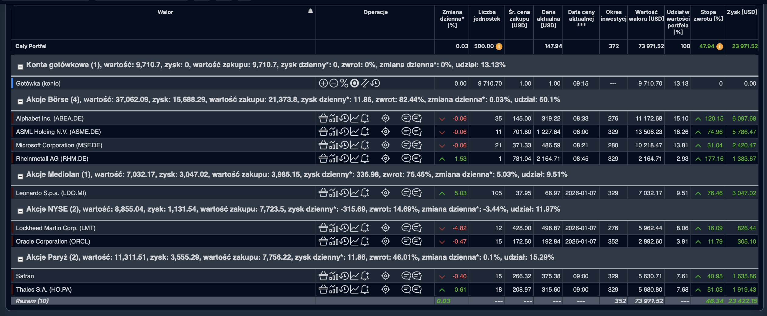 Żadna z pozycji nie generuje istotnego ryzyka strukturalnego dla portfela — nawet krótkoterminowe korekty nie podważają długoterminowej tezy inwestycyjnej.