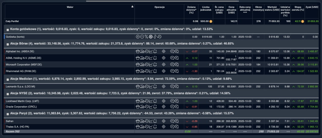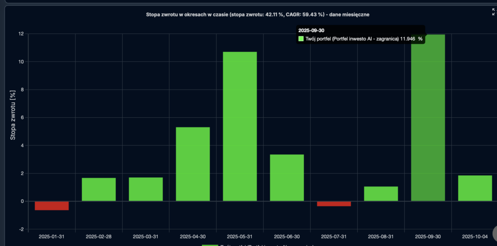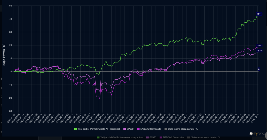 Portfel Inwesto AI – zagranica zyskuje +42%! Technologia i obronność napędzają wyniki