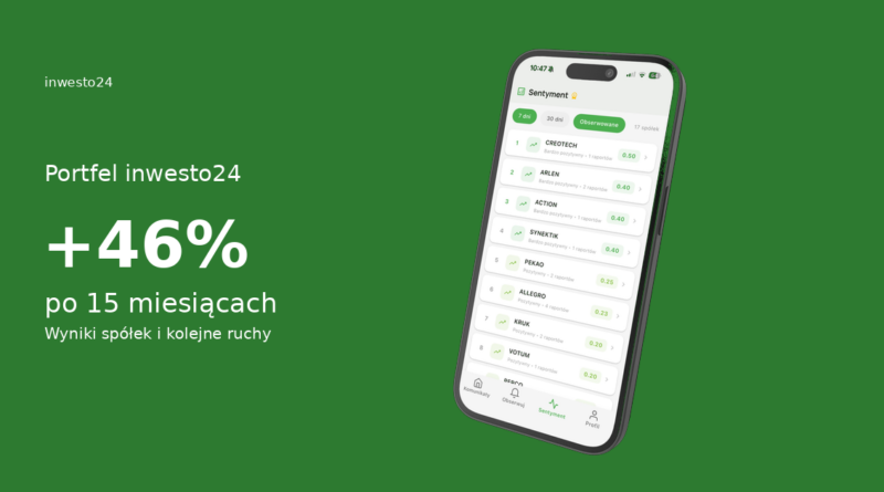 Portfel inwesto24 — +46% po 15 miesiącach. Wyniki, spółki i kolejne ruchy